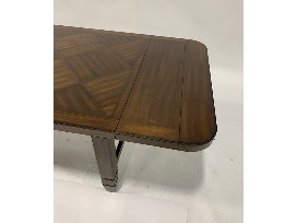 Features: two end leaves, 10" each; storage under table