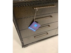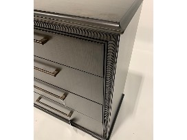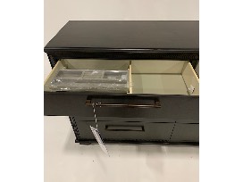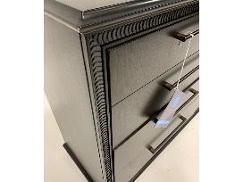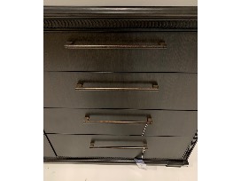 Features: features 8 drawers, ornamental coin carvings, metal hardware in a bronze finish