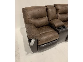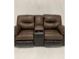 Features: pull-tab reclining motion, attached cushions, high-resiliency foam cushions wrapped in thick poly fiber, corner-blocked frame with metal reinforced seat, lift-top storage console and 2 cup holders