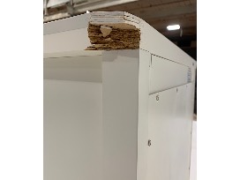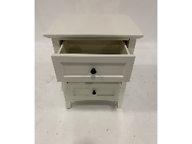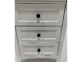 Features: smooth satin finish on a painted white kiln-dried solid mahogany frame with engineered wood panels; durable, hardwood plywood drawer box with English dovetail joinery; full extension ball bearing drawer glides; statuary bronze-finish knobs