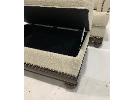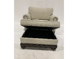 Features: rolled arm design, nailhead accents, wooden feet; ottoman opens for storage