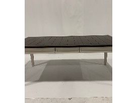 Features: planked top, working drawer at each end of table, tapered legs