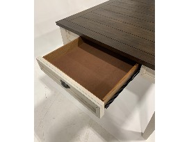 Color: two-tone finish, antiqued white and dark oak