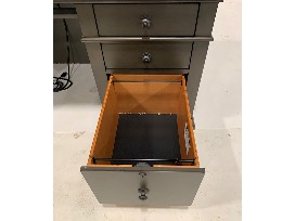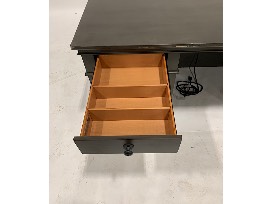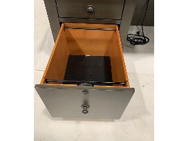 Features: dual A/C outlets, locking file drawers, dovetail joinery, full extension drawers