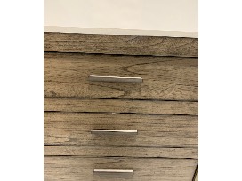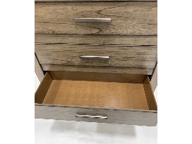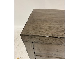 Damage: back side of dresser has been repaired; scratches and marks on finish