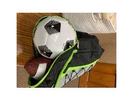 Sports style backpack comes with three balls inside; one football, one soccer ball and one basketball.
