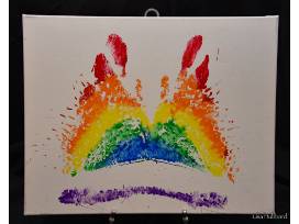 A one of a kind rainbow kiss painting from Bibi the hippo! A perfect gift for any hippo or animal lover. All proceeds from this auction will support the care and feeding of the animals at the Cincinnati Zoo.