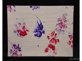 Fun footprint painting by Kris the one-year-old cheetah. Kris and her companion dog Remus have become a dynamic duo at the Cincinnati Zoo. Kris was a single cub and cheetah mothers won't raise a lone cub so Kris was hand raised and is now one of our cheetah ambassadors, educating the public about the plight of wild cheetahs. All proceeds from this auction will support the care and feeding of the animals at the Cincinnati Zoo.