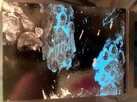 This unique piece of art shows Chira's enormous footprints. Chira is one of our 3-year-old Malayan tiger girls here at the Cincinnati Zoo and she happens to have epilepsy. She doesn't let that bother her though, she is the best climbing tiger we have! Chira is also our friendliest tiger, she will chuff the most out of her sisters (a chuff is a happy tiger noise since tigers cannot purr). Chira is great at husbandry training and she absolutely loves painting! She will even chuff at the paint!! Chira is named because when she was a baby she actually needed a specialized chiropractor to help her straighten her back- "chira"practor. A great gift for any animal lover! All proceeds from this auction will support the care and feeding of the animals at the Cincinnati Zoo.