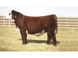 E53 is a power cow with an exquisite look. Freckle faced, stout hipped and ultra-cool on the profile. She displays all of this in a calving-ease package with breed leading carcass merit. Just a 3 year old this female needs flushed and when you see her heifer calf at side you will agree. Pay special attention to the Genesis heifer calf at her side as she is something to analyze in person.