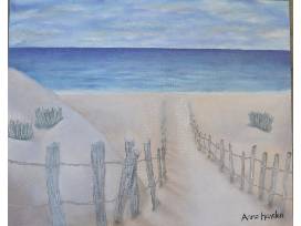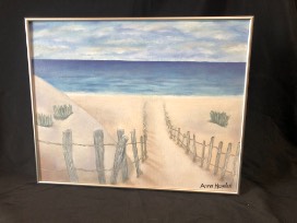 This is a welcoming piece that relaxes the viewer and transports them back to the beach. This piece is done in oil paints and measures 18x24.
