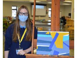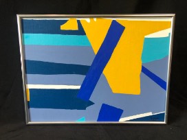 Painting of colorful shapes. This piece is done in acrylic paint and measures 12x16.