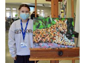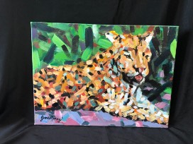 An acrylic and expressionistic piece exploding with colors helping this mercy mascot come to life. This piece measures 18x24 and is presented on a wrapped canvas.