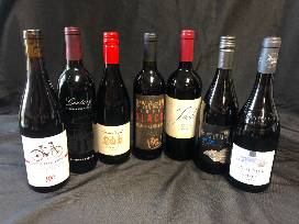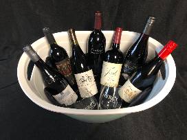 This collection of seven bottles is a red wine lover's dream. Enjoy four bottles of Pinot Noir, one blend, one sweet red wine, and a bottle of red aged here in Kentucky! This cute serving cooler also contains two Mercy wine glasses.