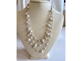 Make a classic statement with this beautifully designed fine sterling silver and white freshwater pearl 3-strand necklace.