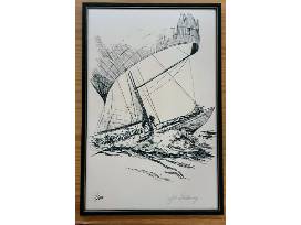 Framed America's Cup Series lithograph by Lyle Galloway. Signed and numbered (222 of 500).