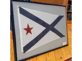 Harold S. Vanderbilt framed private signal flag, 43" x 29.5".