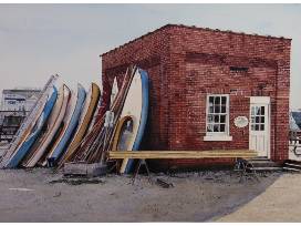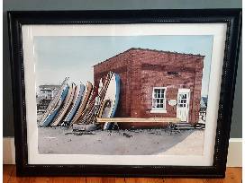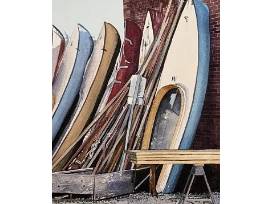 Jennifer Dettmer is known for her exceptionally realistic watercolor paintings. Her work is collected throughout the United States and this framed piece, measuring 37" x 29", will make a very special addition to your personal collection. It features the IYRS Pump House at the edge of our marina and the Beetle Cat sailboats our students have been exactingly restoring for decades.
