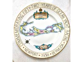 Fine bone china, gilt edge, limited edition commemorative plate from the 1958 Newport to Bermuda Race. Numbered 87 of 120. Measures 11" diameter.