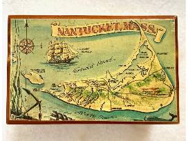 Vintage cedar box with Nantucket embellishment. Measures 5.5" x 3" x 2".