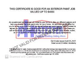 This item is good for exterior house painting valued up to $4000. Contact Chris Sheets at (317)414-4845 to set up your appointment for an in-home consultation.