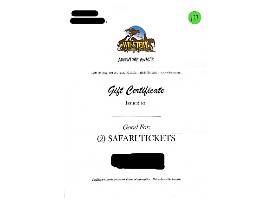 Gift Certificate good for admission for 2 for Wilhelm Drive-Thru Safari Park.