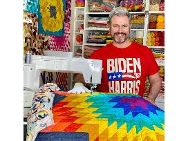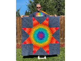 If you don't know who Mister Domestic is, take a minute to look him up NOW! This 56"x56" Lonestar Rainbow quilt is sure to be one you'll treasure for years to come. The geometric machine quilting adds to the simple beauty of this creation!