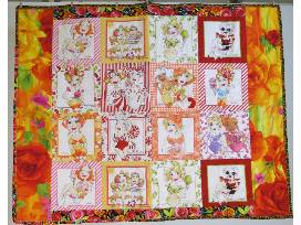 43"x34" Summertime Sweets and Treats. Luscious ladies! Bright, sunny, colorful lap quilt. Fun, fruity gals will brighten your summer days.