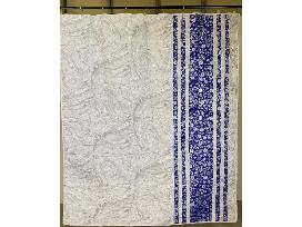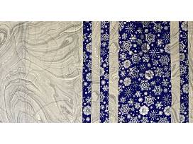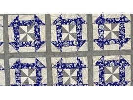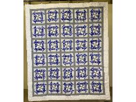 XMas Sparkle 62" x 72" Silver/Navy Churn Dash Pattern Showstopper Winter Wonderland quilt. The sparkly snowflakes are falling, but you'll feel cozy under this cool quilt. The reverse side is as wonderful as the front, with a flurry of snowfall along one edge.