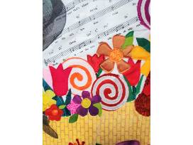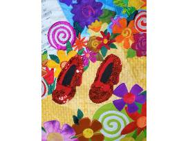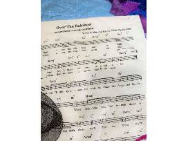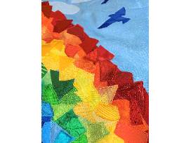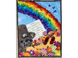This piece of fiber art is a tribute to the song Somewhere Over the Rainbow - a song that holds special meaning for many LGBTQ+ folk. Measurements are 22" x 28.5".