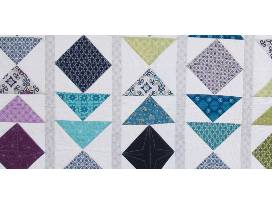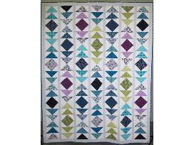 This 76" x 60" quilt is made of flying geese blocks in all shades of blue and purple, with a splash of green. It was a team effort! The Electric Needle donated the fabric for the top and the pattern, I pieced it together, and my mom, Debbie Robbins, quilted it.