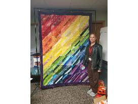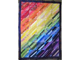 Loving thoughts put into every stitch! Made up of fabric scraps, but they come together in a beautiful way. Look closely to find: chickens, dogs, sparkly butterflies, mermaids, and other treasures. This quilt is full of fun, "I spy" discoveries. Any child (or adult) would love this quilt.