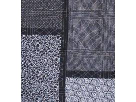 58"x74, 100% cotton, machine wash & dry, pre-washed. The scrappy design of this quilt almost resembles jewels! A wide variety of small pieces of color coordinated fabric were sewn together into blocks. Each block is bordered with a black and white stripe fabric, then assembled. The backing was carefully pieced using assorted black and white prints.