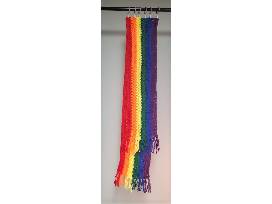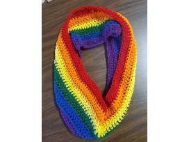 Crocheted, primary colored rainbow striped cowl and scarf set. Share your pride while keeping warm on wintery days.