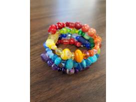 Rainbow beaded memory wire bracelet & dangle earrings.