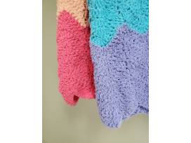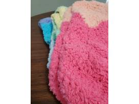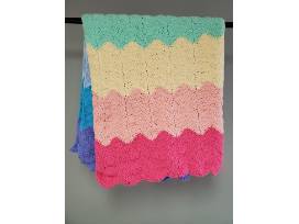 Yarn is 92% polyester. It's suggested to hand wash. I never wash my crocheted afghans too frequently (once or twice a year, and I always wash them in the washer on delicate cycle and let them air dry and has never been an issue). This afghan is incredibly soft! It would make the perfect baby shower gift, or a fantastic dorm blanket. Any child, or adult, would love to snuggle up with this one on a chilly day.