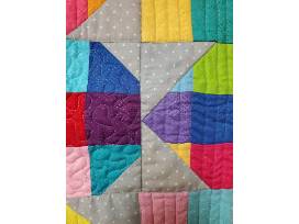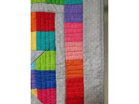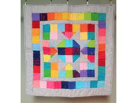 I am donating a 24"x24" multi-colored placemat (could be a wall hanging, too!) which represents many color hues of the rainbow. Light gray background. Pattern was designed by Patti Hillenbrand, owner of Creek Side Stiches Quilt Store in Lodi, WI.