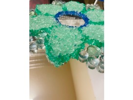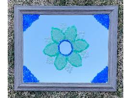 Each student took a turn accenting the mirror with decorative crushed sea glass in shades of blue and green.