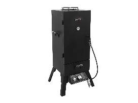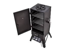 Cook up a feast with the Char-Broil 45" vertical smoker. Control smoked food via fire access doors and air dampers. Spacious 595 sq. in. cooking surface, 3 chrome-plated grates, cool touch handles and temperature gauge, 16,500 BTU aluminized burner and rotary igniter. Included is a porcelain wood chip & water pan with easy access, a four piece BBQ tool set and a cookbook for smoking yummy food!