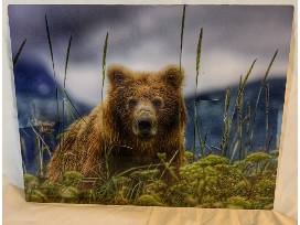This Alaskan wildlife bear photo taken by local rockstar sailor, Greg Schertz, is such a unique aspect and makes you feel like you're almost there. This 11x14 metal print comes with a french wall cleat (pictured), hanging instructions, and the crisp quality that you can really appreciate up close. Signed by the photographer!