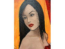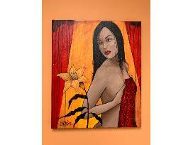 "Flowers are Nice" by LGBTQ+ Artist and past Dorothy Award Honoree Ricky Mestre. Acrylic on canvas. Size is approximately 24" h x 20" w. Influenced by his Puerto Rican heritage and his urban environment, Ricki's art centers on LGBTQ experience.