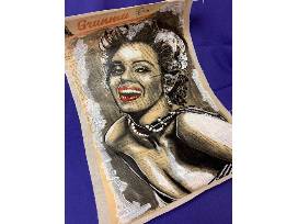 Painting of Marilyn Monroe on a Cuban newspaper decoupaged onto canvas by a Cuban street artist (artist unknown). Size is approximately 23" h x 15 3/4" w.