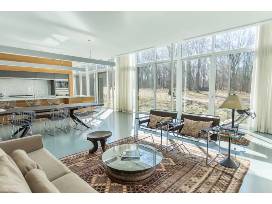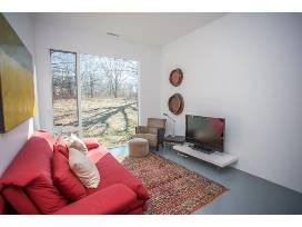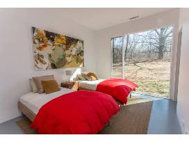 Envision your group of six exploring the charming coast of Michigan and Indiana during a one-week stay in a unique, modern, sophisticated, and private 3-bed, 3-bath home designed by Brininstool and Lynch in the middle of a 40-acre meadow. With floor to ceiling windows and no neighbors nearby, you'll have fantastic views of meadows, trees, and occasional horses who sometimes graze the surrounding land! The home is within walking distance to the beach and Lake Michigan, so you can start your morning with a dip in the lake or end your day building sandcastles. Snuggle up with your favorite books by the cozy fireplace and bring your pets to enjoy this tranquil, relaxing vacation.