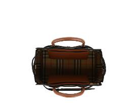 - Burberry leather tote (Dimensions: Height: 9.1" x Length: 14.2" x Width: 6.1"; Strap length: 16.9". Details include: calfskin leather, gold-tone metal hardware, magnetic closure, embossed logo on front, rolled top handles, two interior slip pockets, detachable, adjustable shoulder strap, made in Italy)