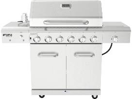 Expand your grilling repertoire with the NEW 6-Burner Propane Gas Grill in Stainless Steel with Ceramic Searing Side Burner and Rotisserie Kit. This grill is constructed of premium stainless steel and equipped with a 15,000 BTU ceramic searing side burner that sears meats to juicy perfection. A plug-in rotisserie kit is included to evenly cook chicken, roasts, pork or anything else you want to rotate on a spit. For nighttime grilling, engage the LED lighting system to illuminate the front control panel with no-fuss. The built-in thermometer enables precise temperature regulation so you can be the grilling king amongst your friends. Make your next grill a Nexgrill.