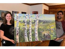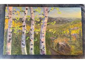 Trevis and I (a husband and wife team) painted this together (oil on canvas) in 2020. For auction, we are donating this print. Each aspen leaf began as a heart. The original was painted to celebrate a wedding in my family and the welcoming of my new sister-in-law, Joy. The process of creating this piece was done collaboratively, with my husband and I painting every other layer. We could neither one create this picture alone, because it is a vision created by merging our unique viewpoints. We hope that it inspires love, mutual respect for differing viewpoints that make up the big picture, and joy in whatever space it inhabits.