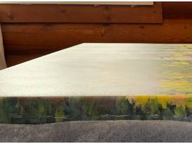 This beautiful 48"x30"x1.5" Colorado Aspens Print was created by husband & wife duo. They both work on their artwork... one layer at a time, she gets a layer, he gets a layer until the masterpiece is complete!