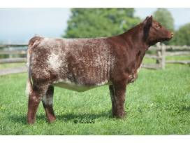 An absolutely drop dead gorgeous dark roan heifer. Breathtaker Amy is a full sister to Firestorm, with all the look and power to be an outstanding show heifer. We have sold multiply full sisters over past few years that have averaged well over $7000. Being out of Breathtaker, Amy will no doubt become a foundation female in your herd that will flat out produce. She's one special heifer, that has the proven pedigree and loaded genetic package buy with confidence.