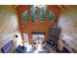 Indoor Living: Open layout, soaring ceilings, flat-screen in every room, cable TV, floor-to-ceiling rock fireplace, and wood & electrical burning furnace.