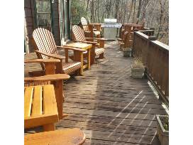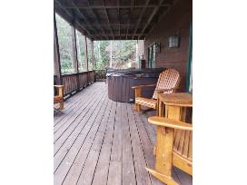 This newly renovated cabin has new upgrades from the kitchen to the bedrooms with all new and updated furniture and linens. Relax in the spacious living room as you gaze up at the soaring ceilings. The large country kitchen includes a breakfast nook. The master on the main floor features a bath spa and remote-controlled gas fireplace. The basement features a wood burning stove. Your vacation home features three oversized master bedrooms, solid oak floors, wood interior walls and three amazing porches. The perfect home for entertaining!